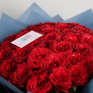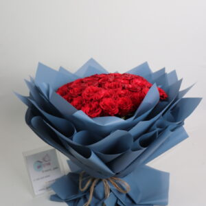 استمتع بتناغم الألوان الجريئة مع باقة سكاى ريد، التي تجمع بين فخامة الورد الجوري الأحمر القاني وعمق اللون الكحلي الملكي. صُممت هذه الباقة بتنسيق دائري كثيف يبرز جمال الورد، مع تغليف “مودرن” من الورق الفاخر ذو الثنيات العريضة، لتكون هدية استثنائية تعبر عن التميز والرقي في كل مناسبة.