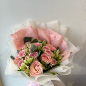 • الإضافات: شريط ساتان وردي ناعم يزين قبضة الباقة.